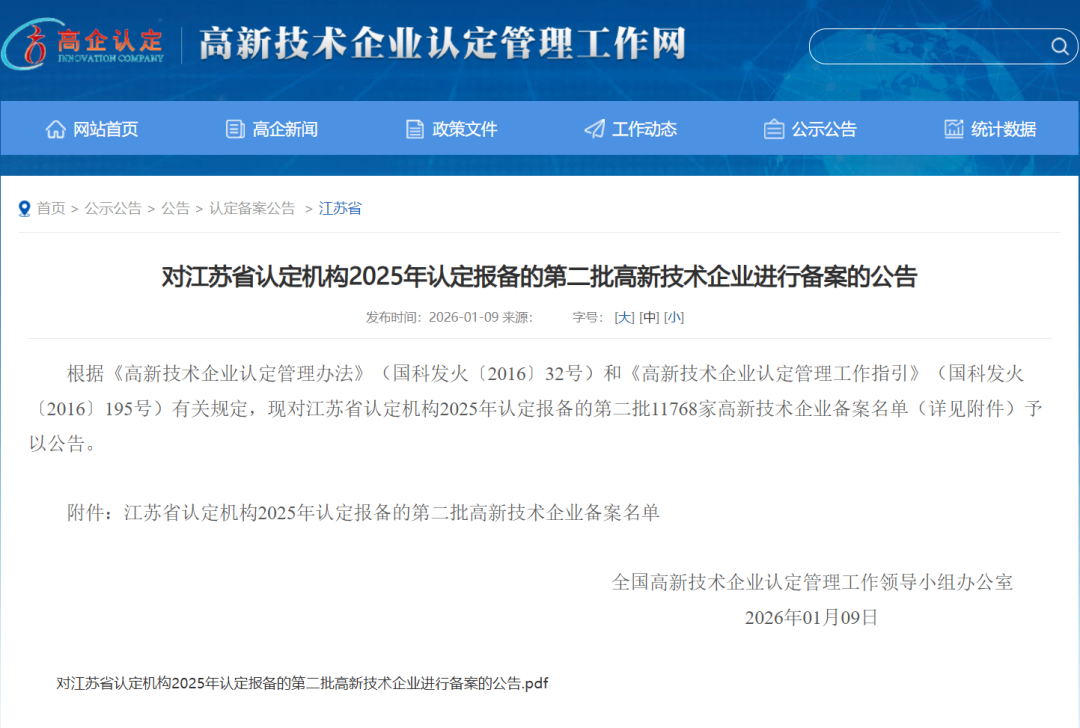近日,根据《高新技术企业认定管理办法》及相关规定,全国高新技术企业认定管理工作领导小组办公室对江苏省认定机构2025年认定报备的第二批企业进行备案公示。lewin乐玩凭借其扎实的科技创新实力与完善的研发管理体系,成功荣列在本次备案中。